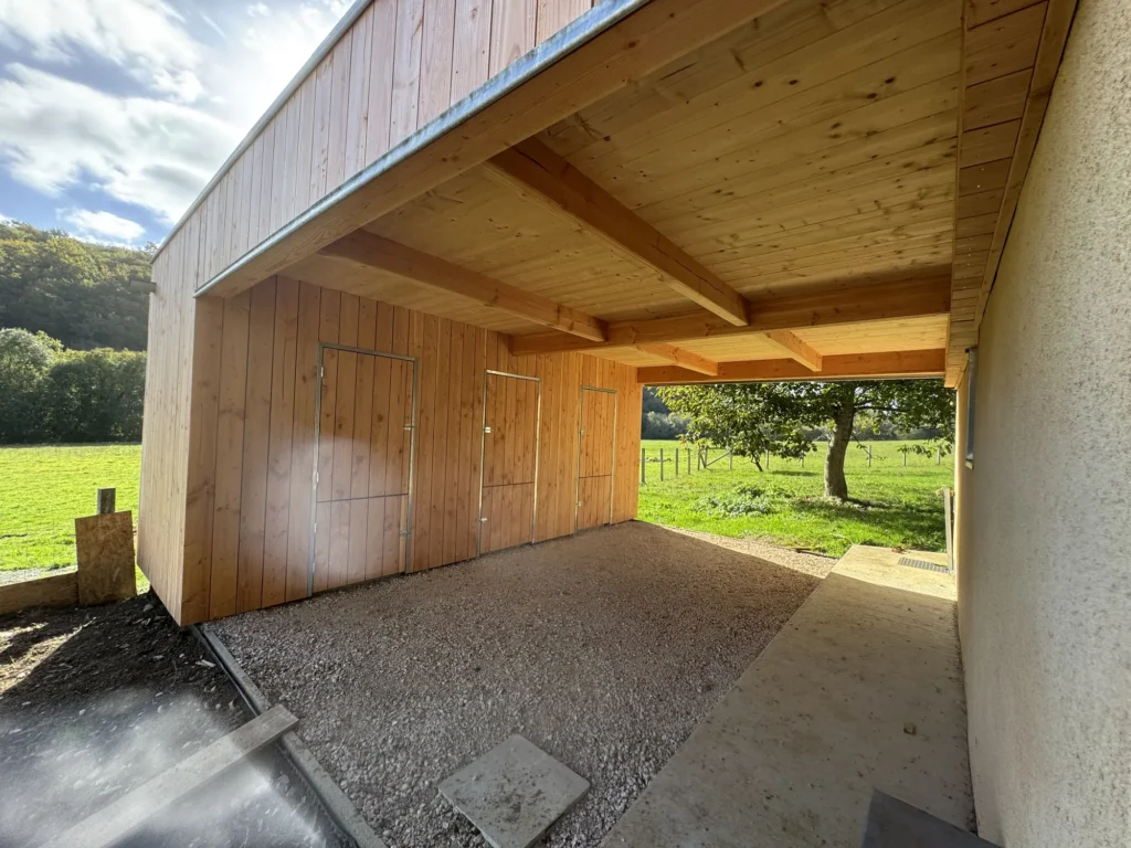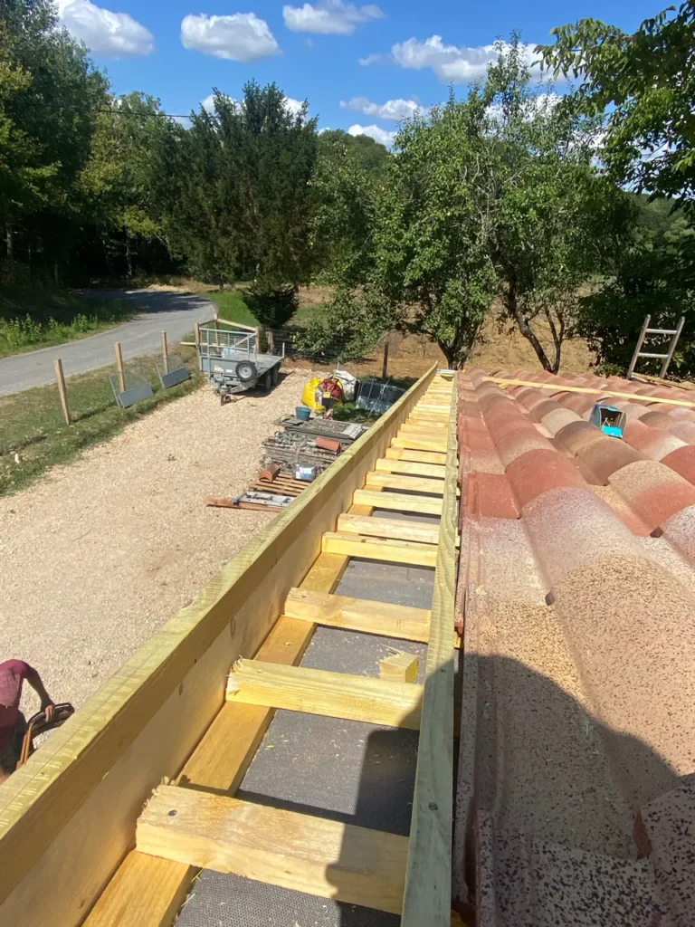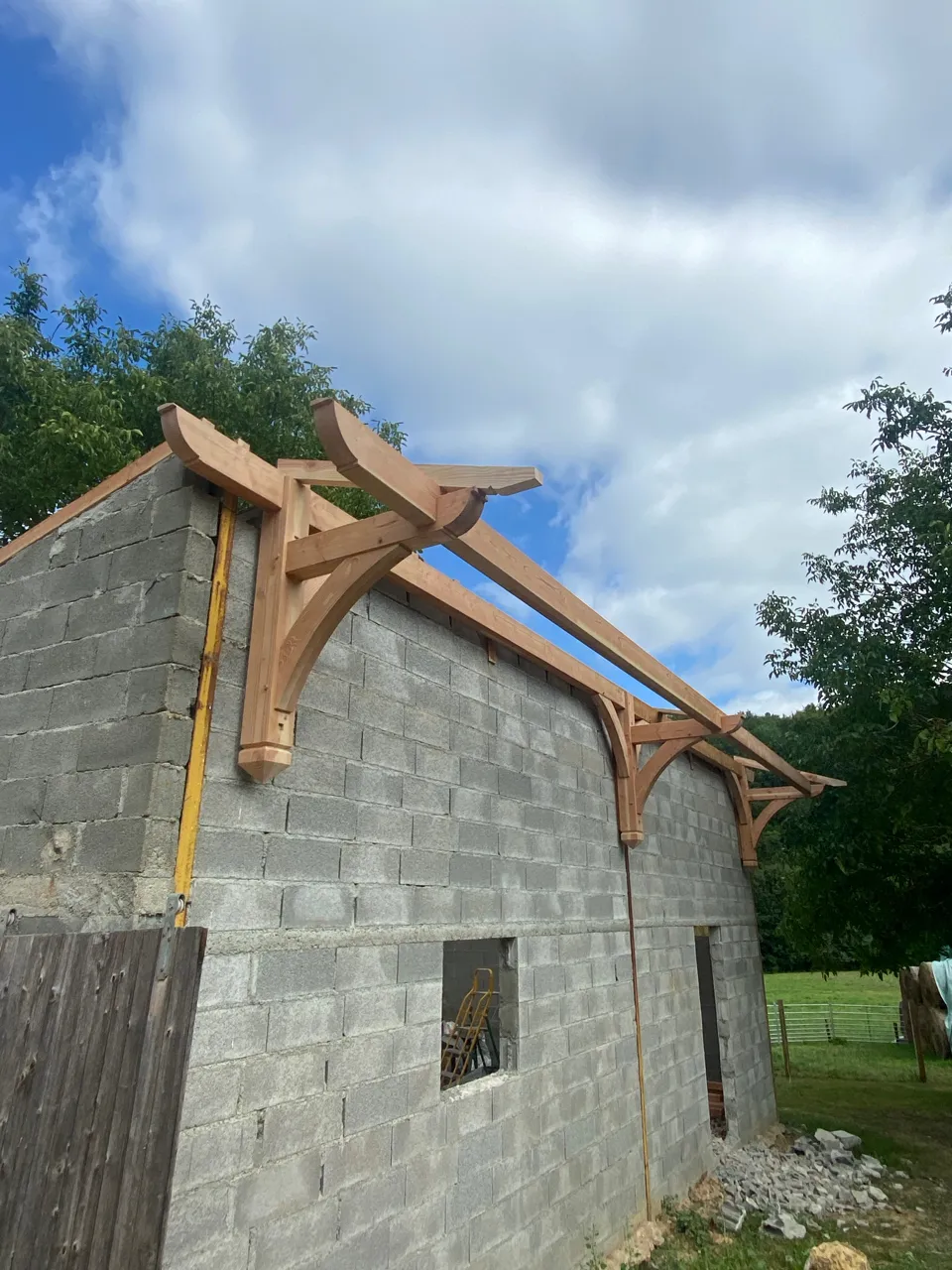 Démolition, ouvertures, dalles béton, pose de menuiseries, fabrication porte coulissante, charpente traditionnelle, lambris peuplier, ossature bois isolée laine de bois, placo, couverture tuile mécanique emboitement, zinguerie, habillage de bandeaux, couloir zinc, girouette, ornements, habillage tableaux zinc, chêneau encaissé, habillage acrotère, extension ossature bois toit plat, bardage vertical claire voie douglas.