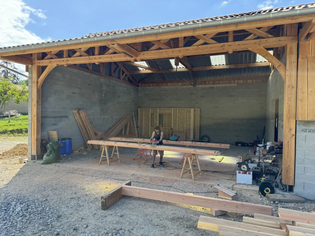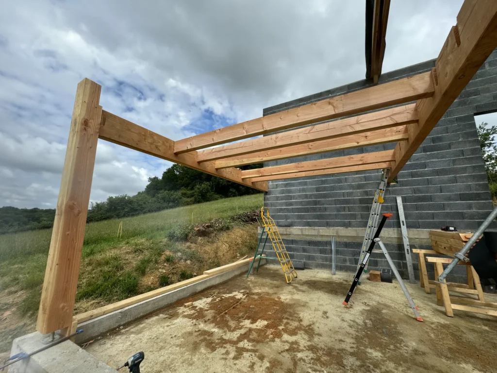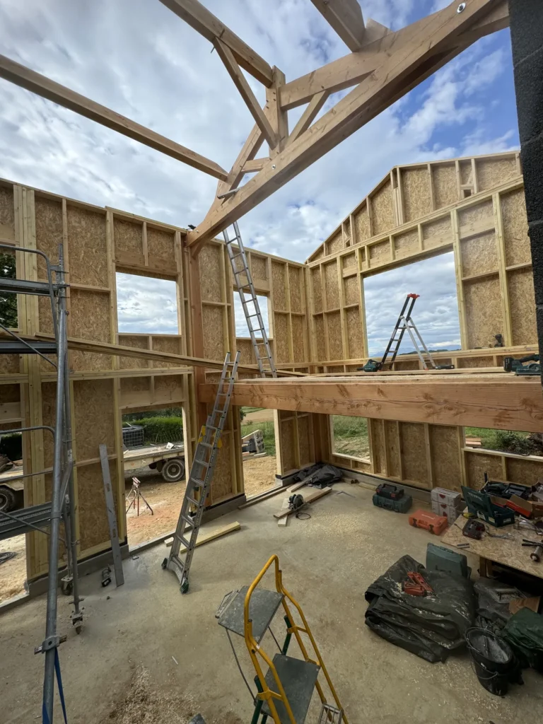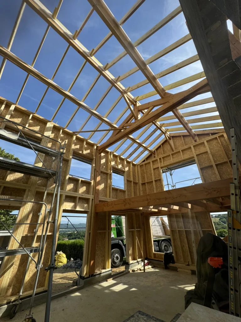 Accueil » Réalisations » Charpente et Ossature Bois » Construction maison ossature bois 100 m2